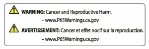 This safety warning is provided in compliance with the Section 25603(a) of the California Code of Regulations (CCR).